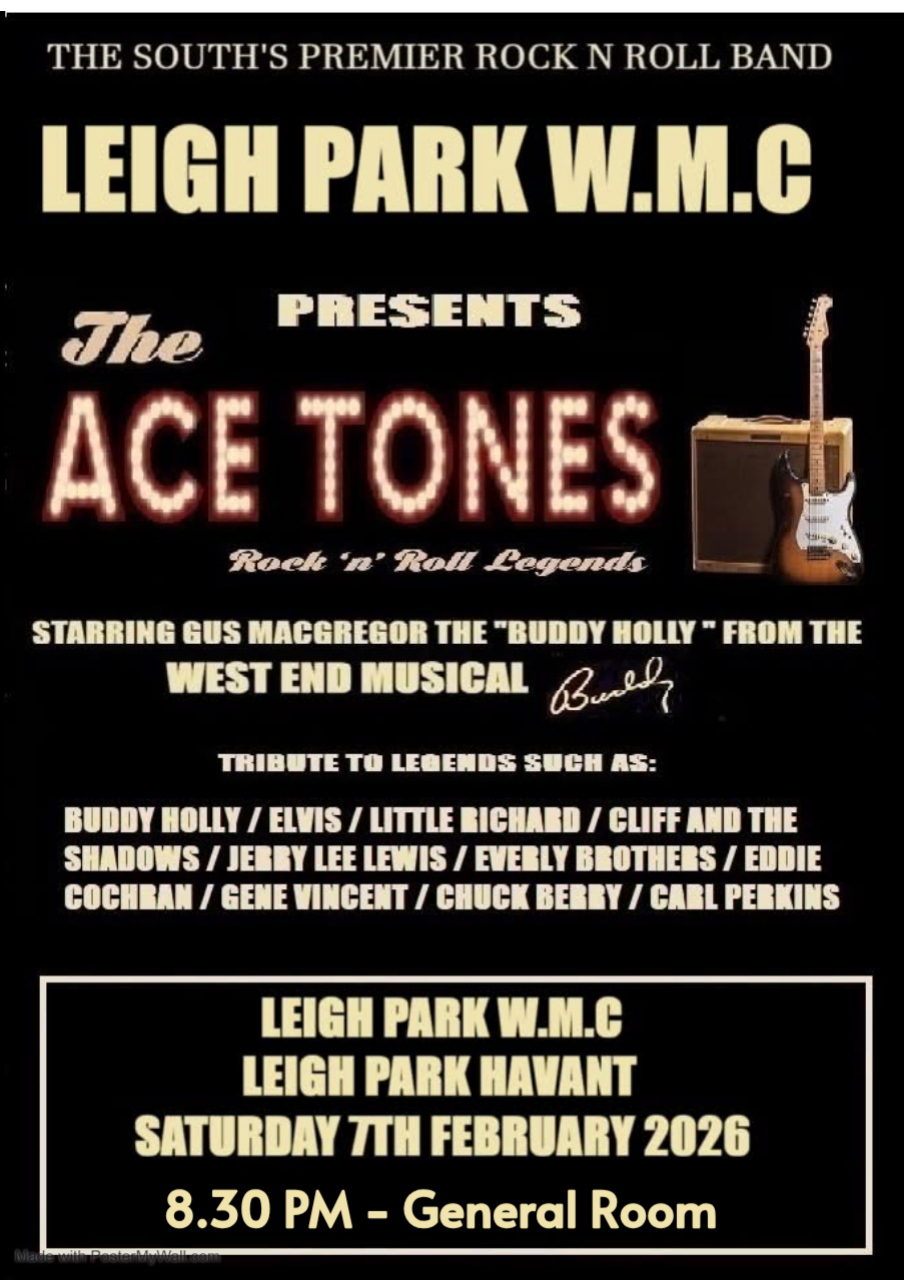 Rock and roll hits the club in the form of the Ace Tones. Included in the line up is Gus Macgregor, who starred in the West End as Buddy Holly in Buddy, the Musical.