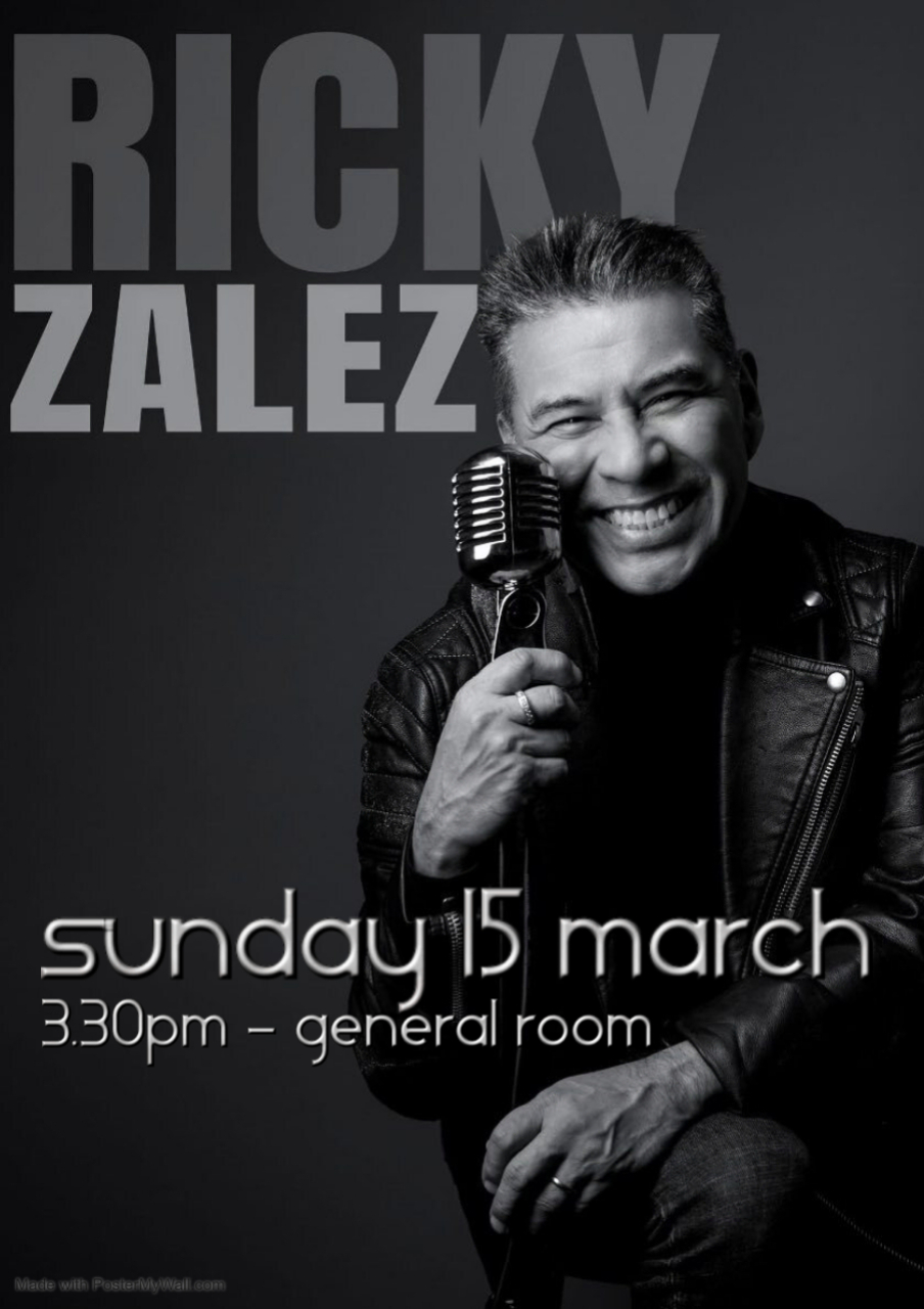 This afternoon as well as our regular entertainment, including raffles, games and Open The Box, we will be entertained by Ricky Zalez.